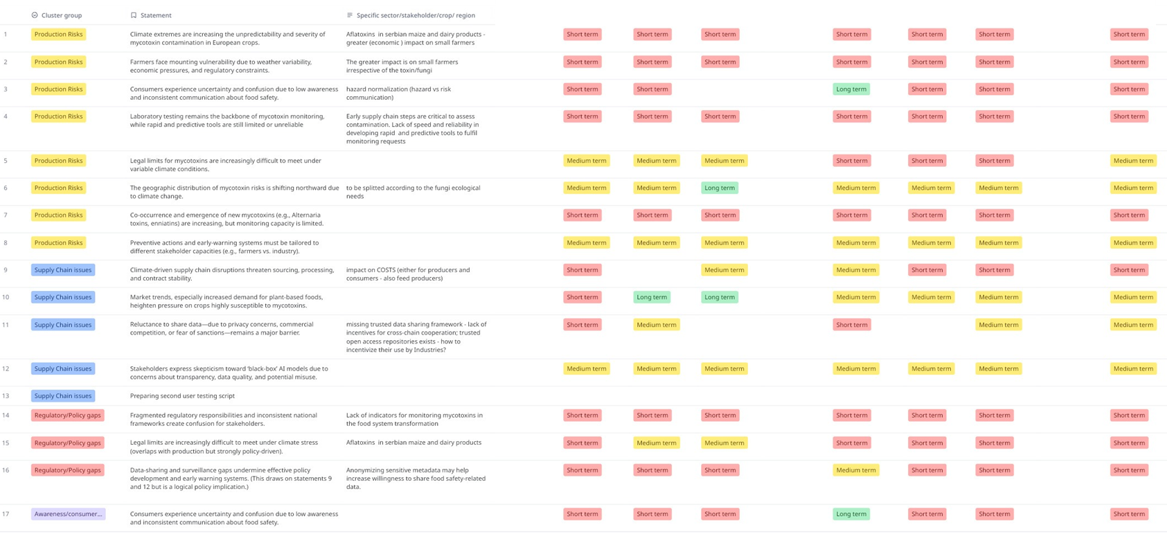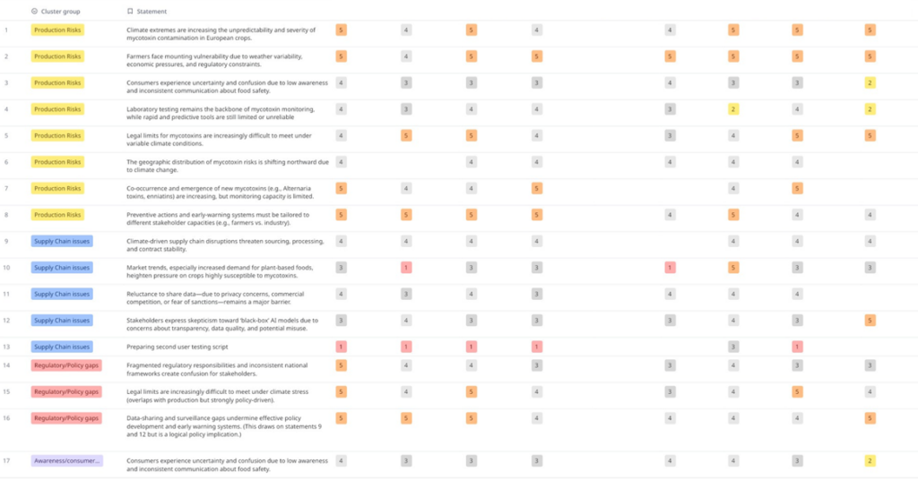 The outcome of Workshop 1 is a Validated perceptions framework on how climate change affects mycotoxins risks, combining multi-stakeholder insights with scientific evidence and prioritised according to perceived urgency and expected impact.