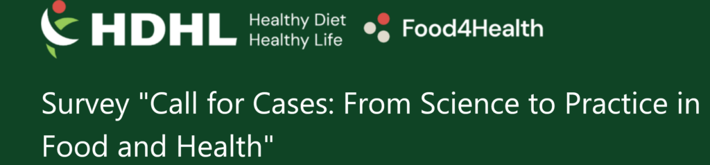 Through a short online survey (approximately 25 min.), stakeholders can submit cases from their own work, their organisations or other initiatives that demonstrate impactful uptake of Research and Innovation (R&I) solutions in the food–health nexus. Eligible examples may stem from EU-funded or non-EU-funded projects, as long as they sit at the food–health interface and show how science was used in a tangible way. HDHL Food4Health is particularly interested in cases that illustrate: science democratisation (e.g. campaigns, pilots, citizen-facing tools, societal uptake of knowledge), policy uptake (e.g. evidence informing strategies or regulations), and new multi-actor processes (e.g. mirror groups, consultative groups, stakeholder dialogues).